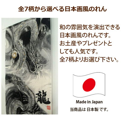 【ネコポス送料無料】のれん 85×150cm 日本製 選べる 「日本画風のれん」【IT】 全7柄間仕切り 目隠し 幅85cm 丈150cm 暖簾和風 龍 トラ 鶴亀七福神 鯉の滝登り 風神雷神 五爪神龍 鳳凰 日本画 プレゼント お土産