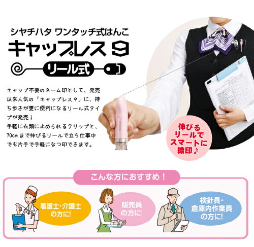 【印面付き】届いたその日から使えます シヤチハタ キャップレス9 リール式/印面付き/シャチハタ/キャップレスネーム/リールキー付